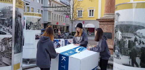 Vertreter der Presse und viele Passanten hatten großes Interesse an unserer Veranstaltung. Es war eine wertvolle Erfahrung für alle Mitwirkenden und auch der Wettergott war uns wohl gesonnen. Die Firma Loacker als Partner einer unserer Übungsfirmen stellte uns Kekse zur Verfügung, die wir mit Werbeetiketten zum Tag der offenen Tür an die Interessierten verteilten. Resumee: Es war eine gelungene und informative Veranstaltung zu deren Gelingen viele beigetragen haben. Sophie Feiertag, 4AK